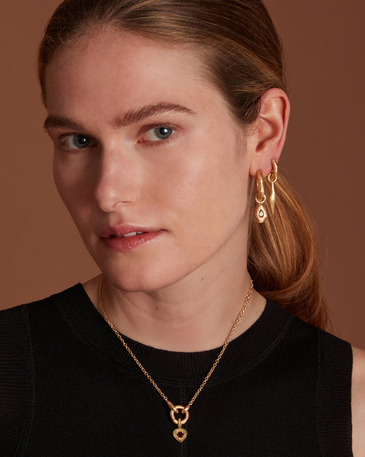 Wander Hoops Medium with Heart Charms Pink Tourmaline