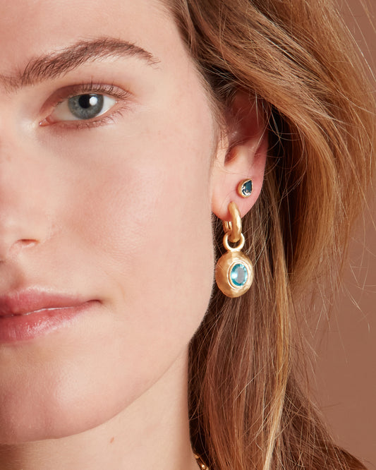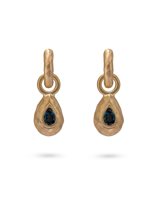 Wander Hoops Small with Drop Charms Deep Blue Topaz