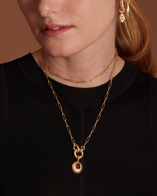 Voyage Necklace Clip Chain with Sasso Charm Red Garnet