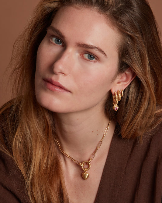Wander Hoops Small with Heart Charms Pink Tourmaline