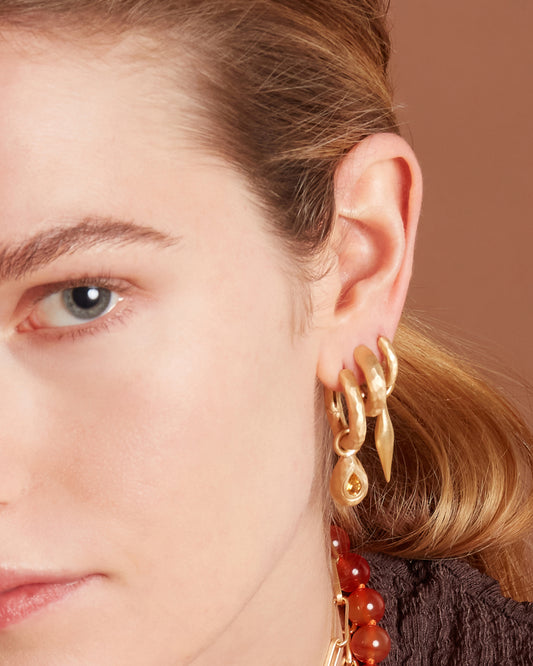 Wander Hoops Small with Drop Charms Madeira Quartz
