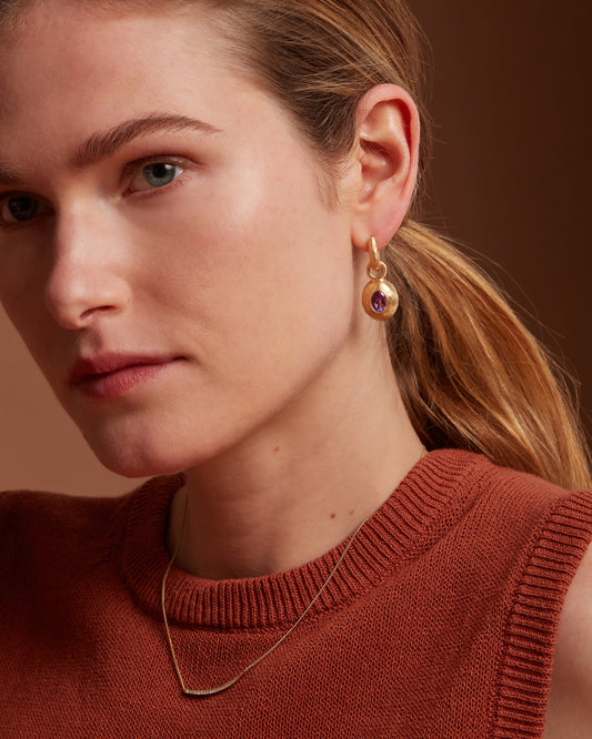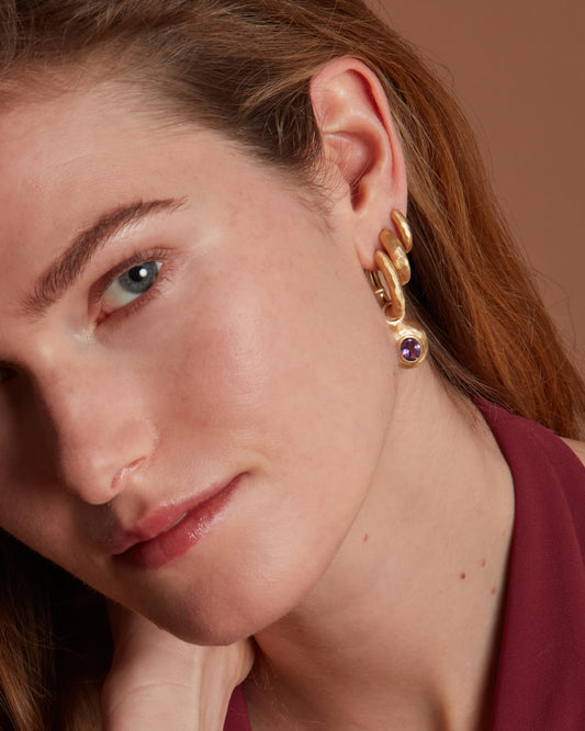 Wander Hoops Small with Sasso Charms Purple Amethyst