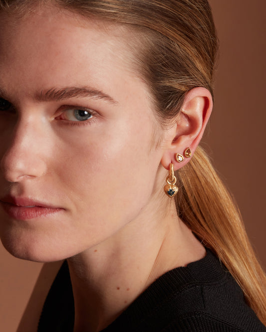 Wander Hoops Small with Heart Charms Deep Blue Topaz