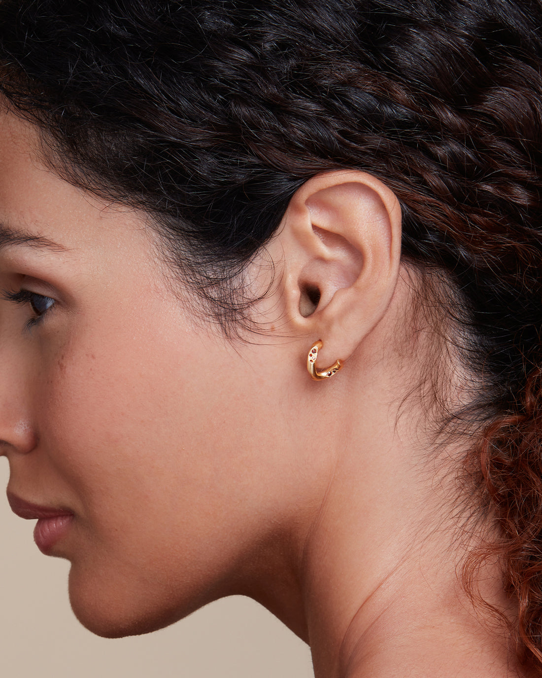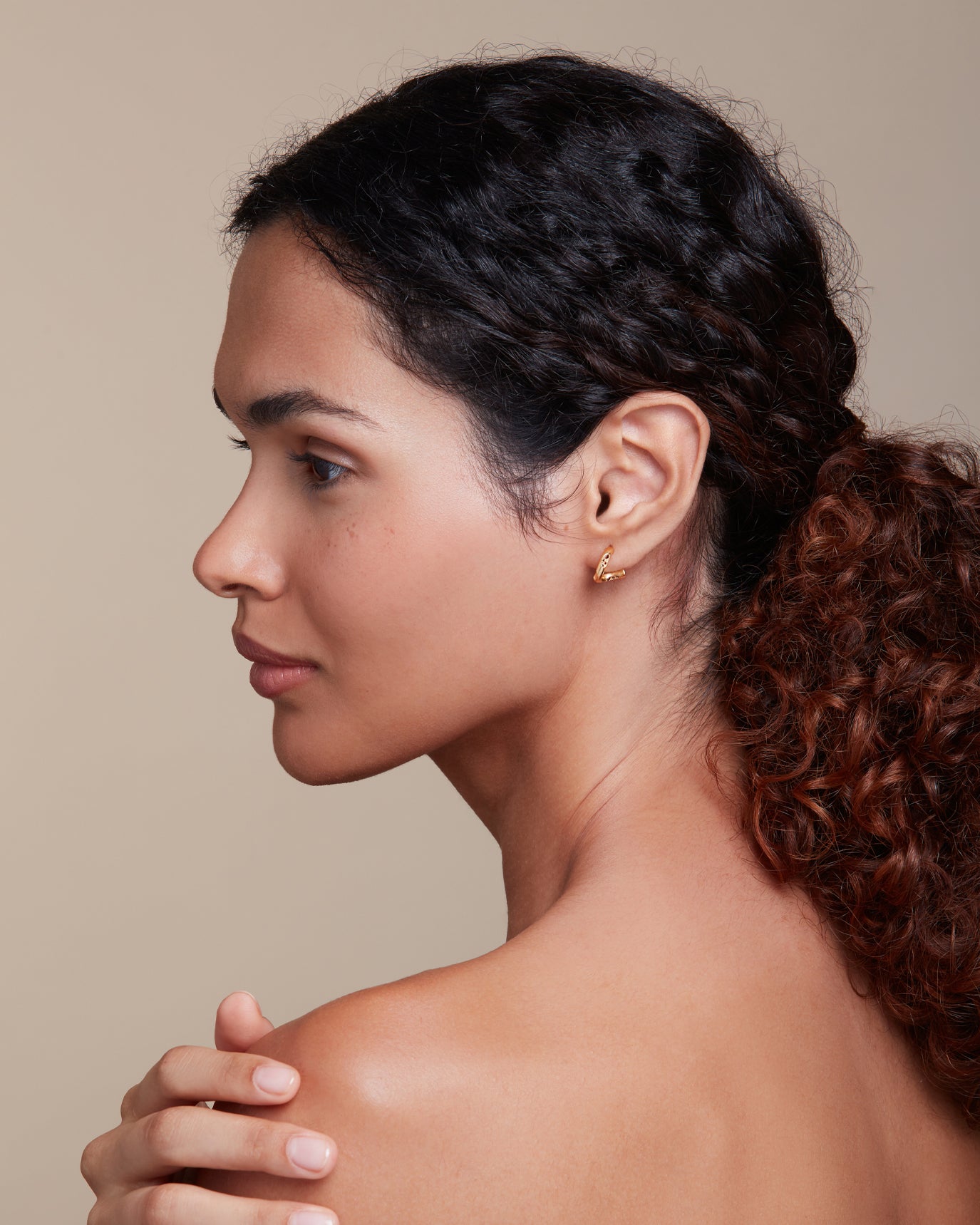 Orecchini Eden con Diamanti Cognac Naturali di 0,12 ct. Modello huggie dalla forma scultorea, impreziosito da luminosi micro pavé irregolari di diamanti. Le calde tonalità di queste affascinanti gemme, che spaziano dal marrone dorato al ricco caramello, conferiscono al gioiello un'eleganza discreta e una bellezza senza tempo. 100% Fatto a mano in Italia. Diamanti conflict-free, conformi al Kimberley Process.