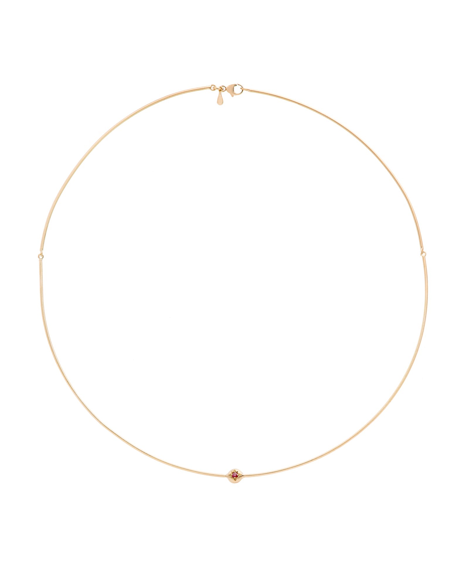 Collana Moon con Rubino Naturale da 0,04 ct. Design ultra chic e minimalista, ispirato al classico modello di collana ''punto luce''. Uno stile senza tempo, composto da due semicerchi, arricchiti da un raffinato motivo a forma di luna con stella incisa a mano. 100% Fatto a mano in Italia.