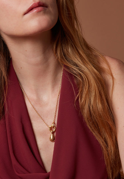 La Collana Voyage presenta una silhouette elegante e versatile, da indossare lunga o avvolta intorno al collo. Le maglie sfaccettate e il porta charm creano una base che valorizza il Ciondolo Goccia, dalla forma scultorea che richiama l’acqua, la vita e lo spirito di esplorazione. Chic da sola, ancora più affascinante con un mix di charms. 100% Fatto a Mano in Italia.