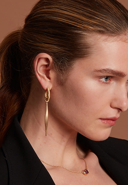 Gli Orecchini Wander, sfaccettati artigianalmente per un look elegante e moderno, sono abbinati ai Ciondoli Goccia, con Quarzo Madeira Naturale di 0,8 ct. Una gemma che evoca la luce del sole, l'energia e la positività. 100% Fatto a Mano in Italia.