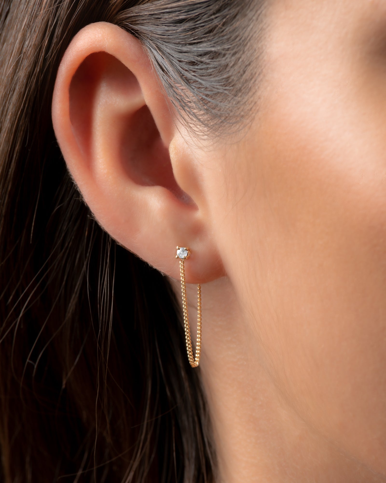 Connection Chain Studs with Natural Diamonds of 0.1 ct. Flattering fashionable design with dainty and sparkly movement. An elegant and playful jewel perfect to wear day to night. 100% Handmade in Italy.