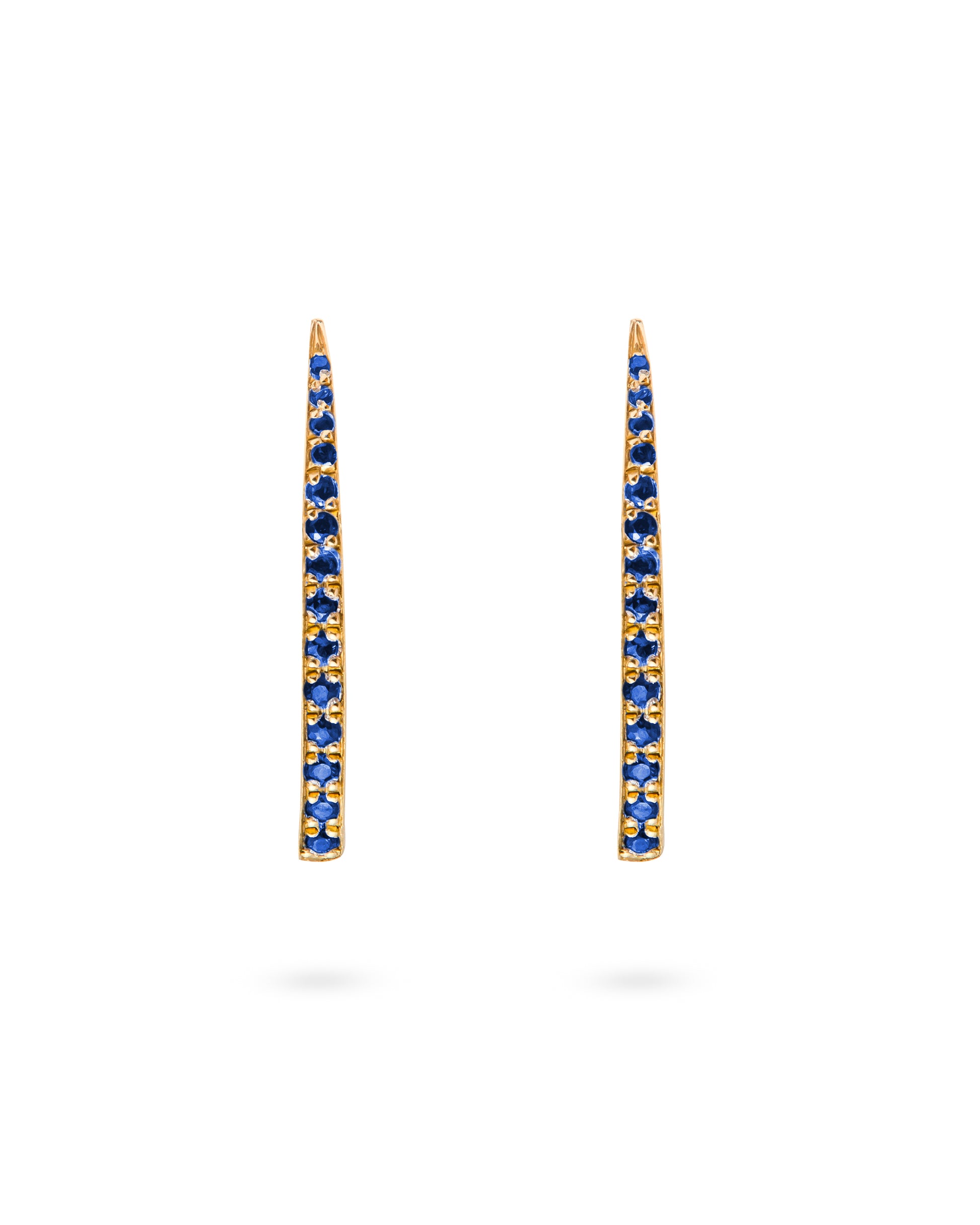 Crescent Moon Earrings Long Sapphire 18K Gold