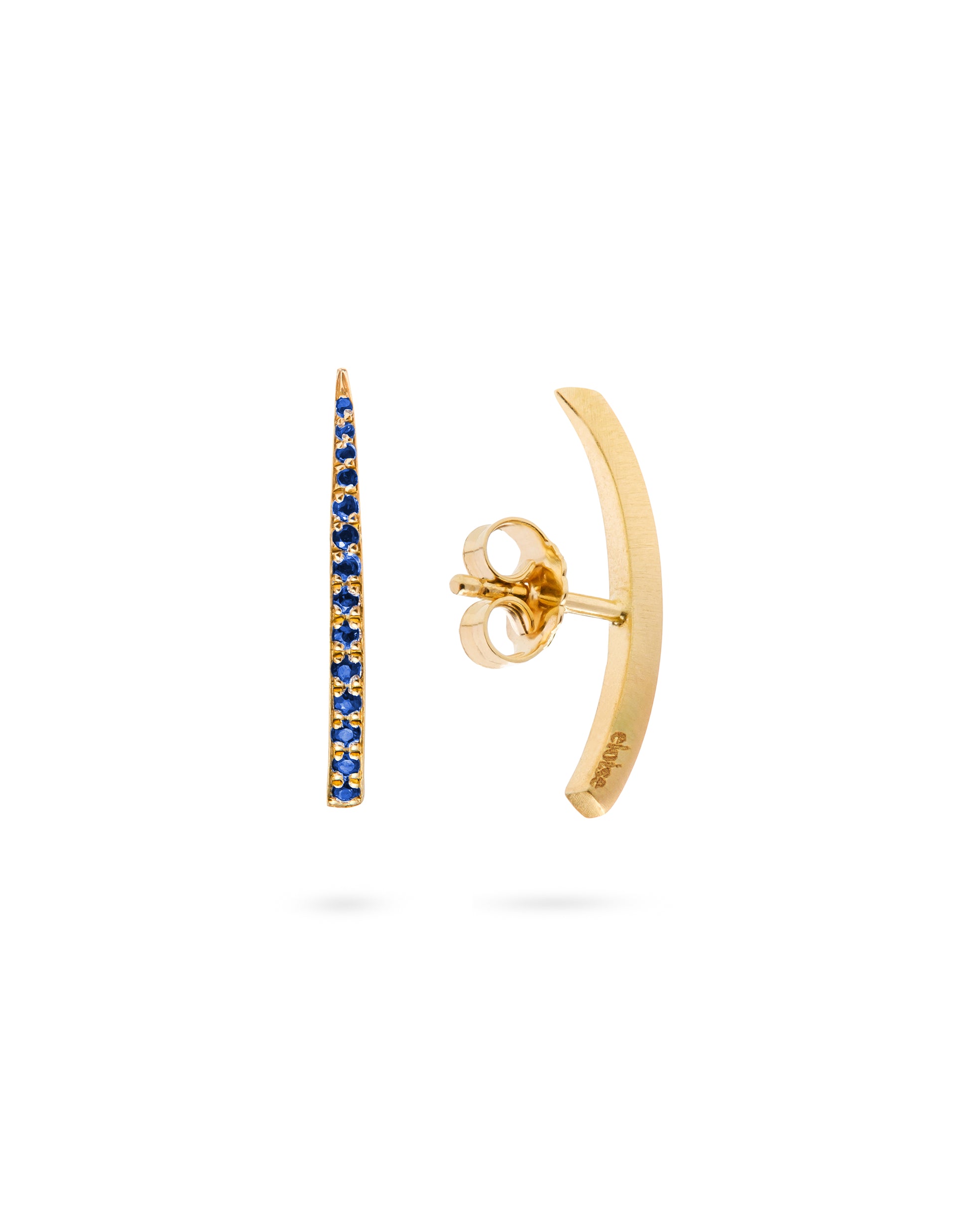 Crescent Moon earrings with Natural Sapphires of 0.25 ct. Ergonomic minimal motif that seamlessly blends with the curve of your earlobe. Perfect to wear day to night. 100% Handmade in Italy.