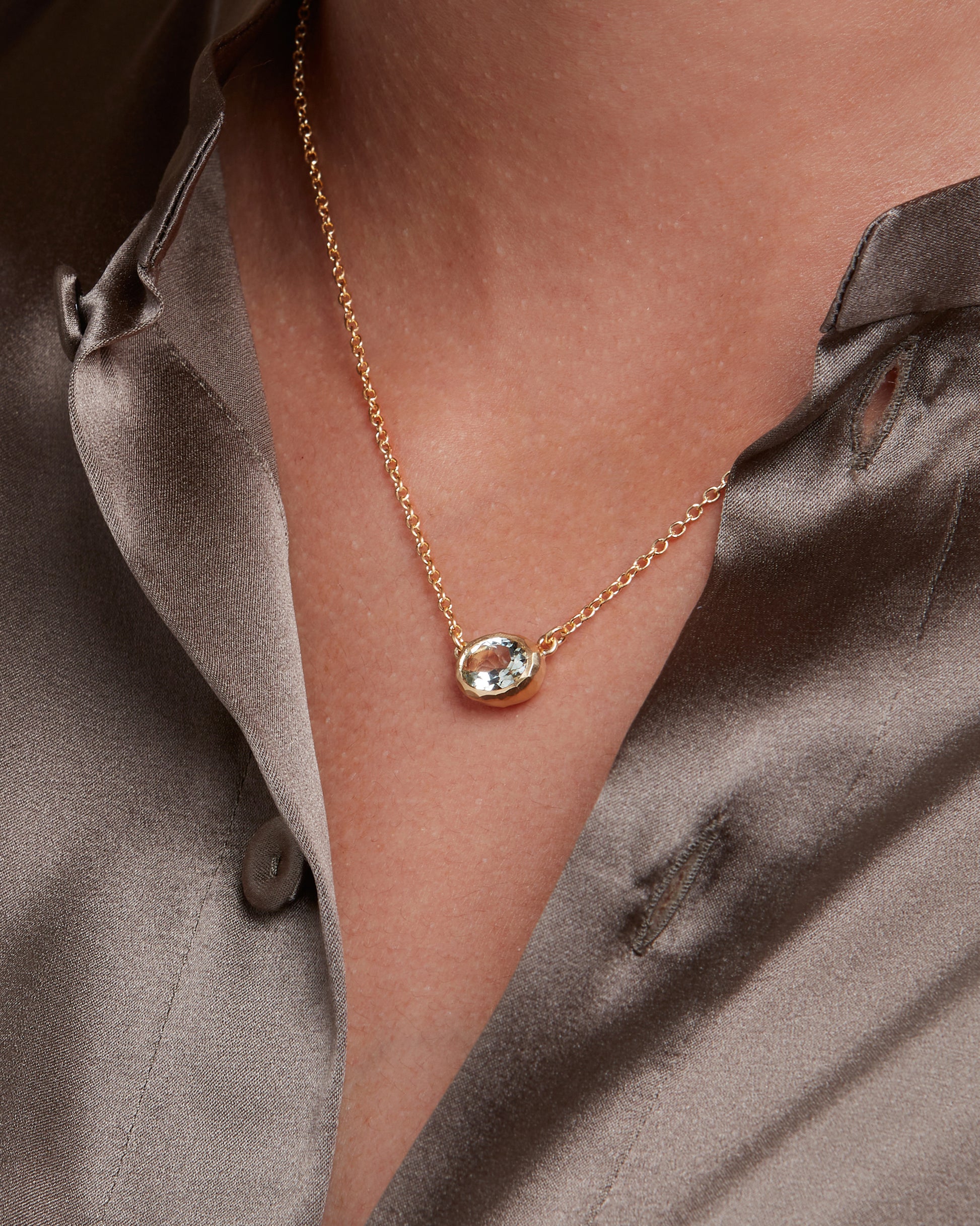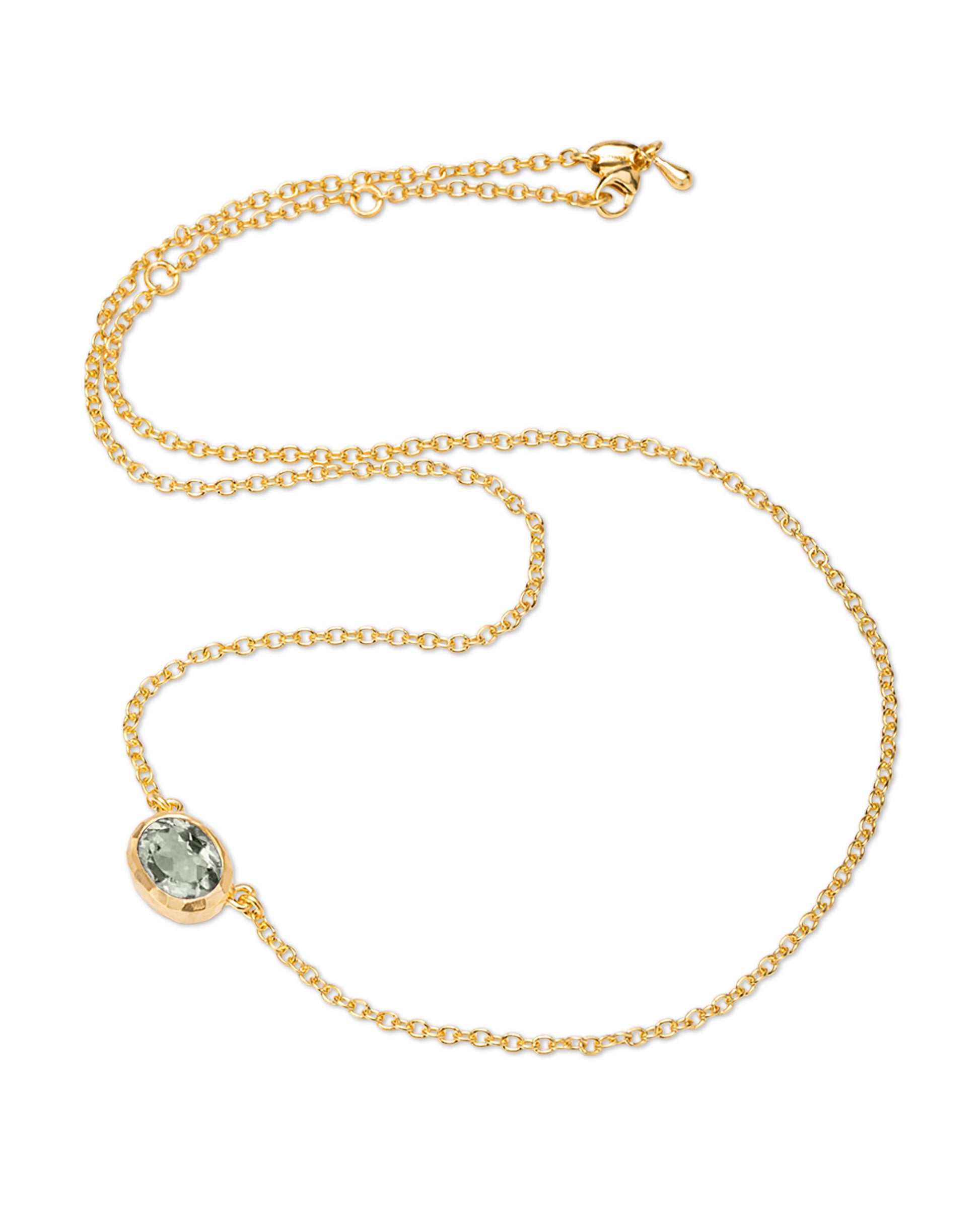 Ellipse Necklace with Natural Light Green Prasiolite of 1.7 ct. Bold oval bezel with faceted finish, and stunning gem that promotes serenity and inner peace. A timeless shape that symbolizes the universe movement and infinite nature. 100% Handmade in Italy.