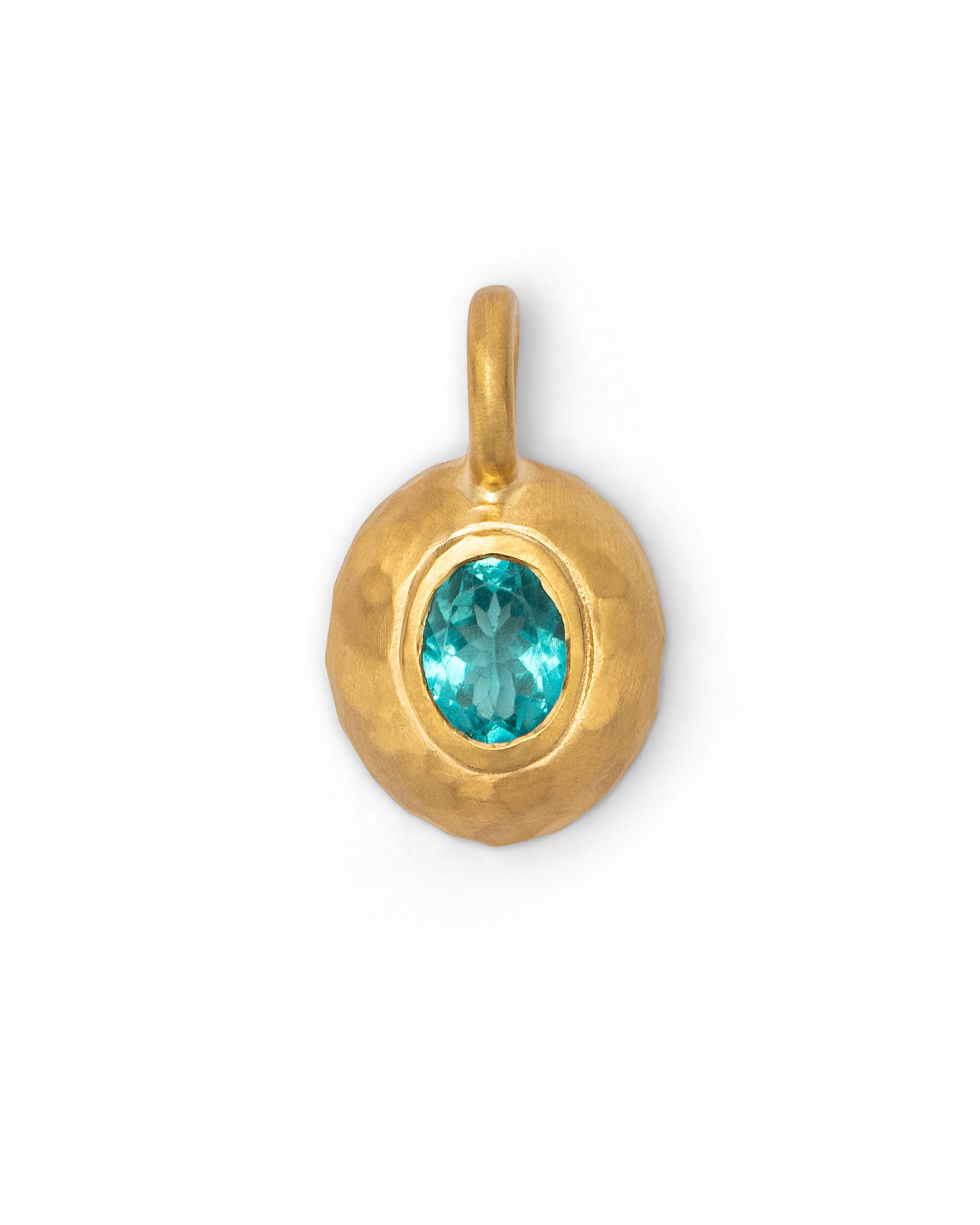 Milestone Sasso Charm Medium with Natural Apatite of 1.8 ct., a bold bezel with a stunning and delicate gem in neon Blue tones. A stone associated with purpose and the ability to maintain focus on personal objectives, promoting self-confidence. Perfect for Necklaces and Bracelets. Designed to mix and match with multiple charms. 100% Handmade in Italy.