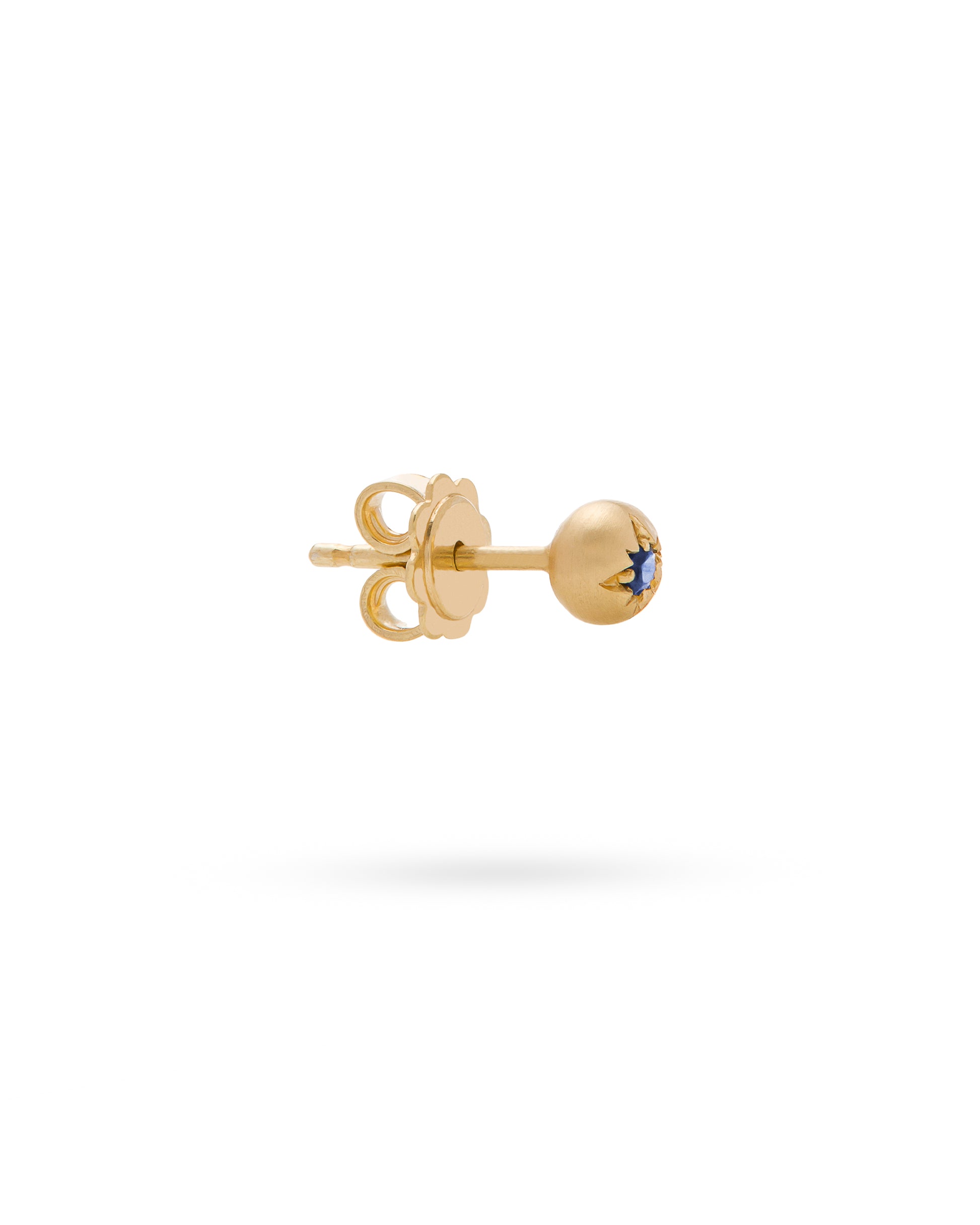 Moon Earrings with Natural Sapphires of 0.08 ct. Round shape boule design with hand-engraved star. A style that reinterprets the classic baby studs with a sweet and cool twist to cherish forever. 100% Handmade in Italy.