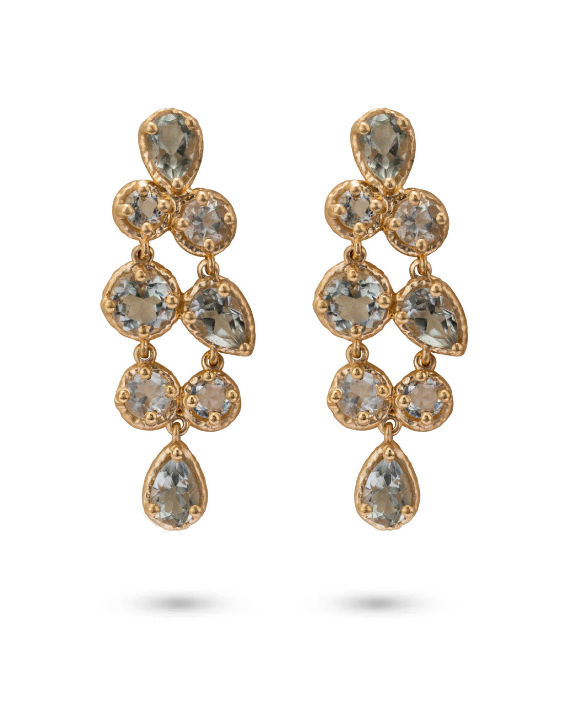 Odyssey Earrings Pair with Natural Light Green Prasiolite of 5.6 ct. A piece with red-carpet worthy allure, yet designed for everyday life, to be worn effortlessly. Distinguished by a versatile length, a flawless drop structure, the cutest dangle movement and sophisticated monochrome sparkly gems. A voyage inspired jewel, adorned with playful bezels with faceted finish. 100% Handmade in Italy.