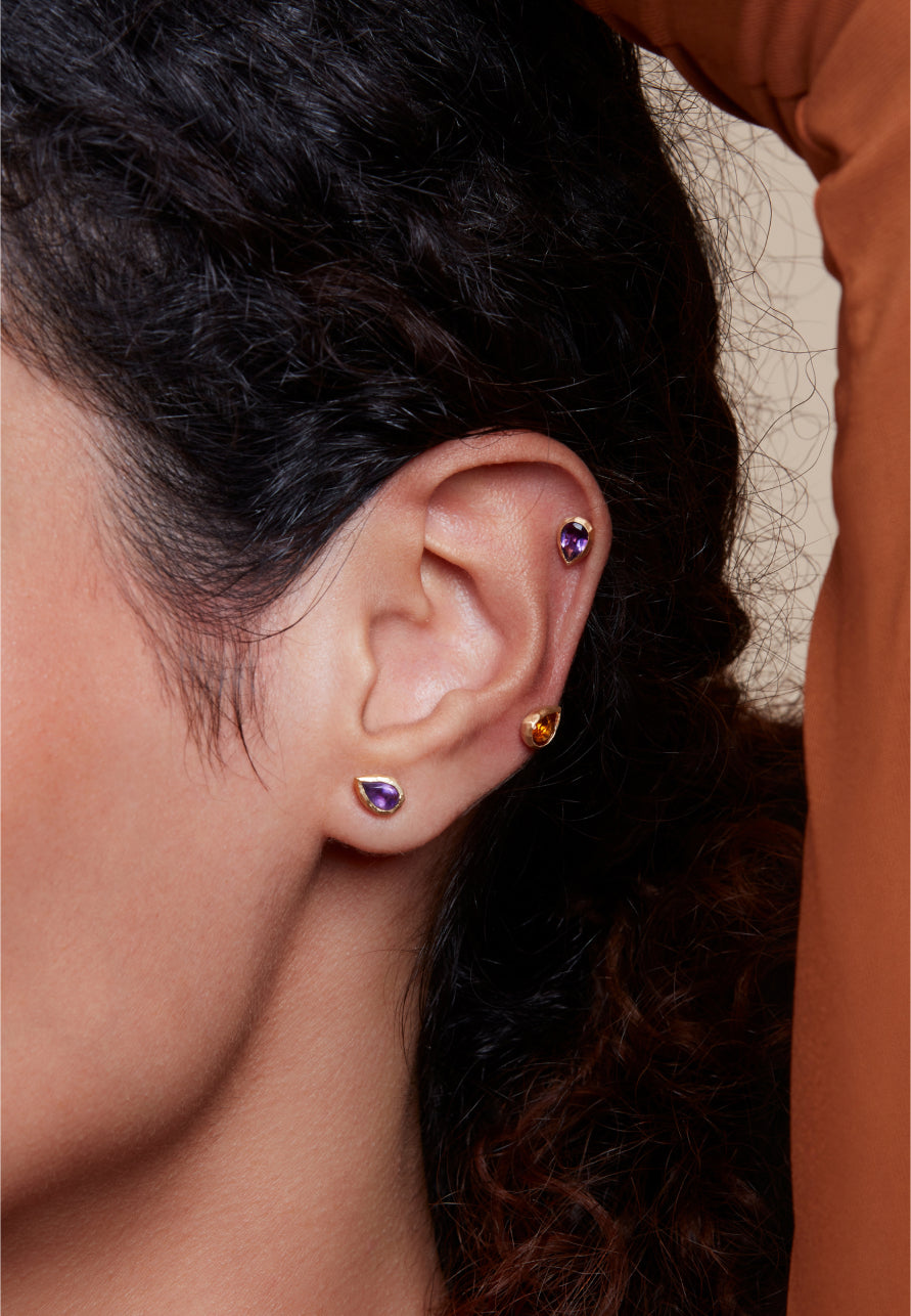 Drop Stud with Natural Yellow Citrine Quartz of 0.4 ct. Eclectic design with a bold pear shape gemstone set in a precious bezel with faceted finish. 100% Handmade in Italy.