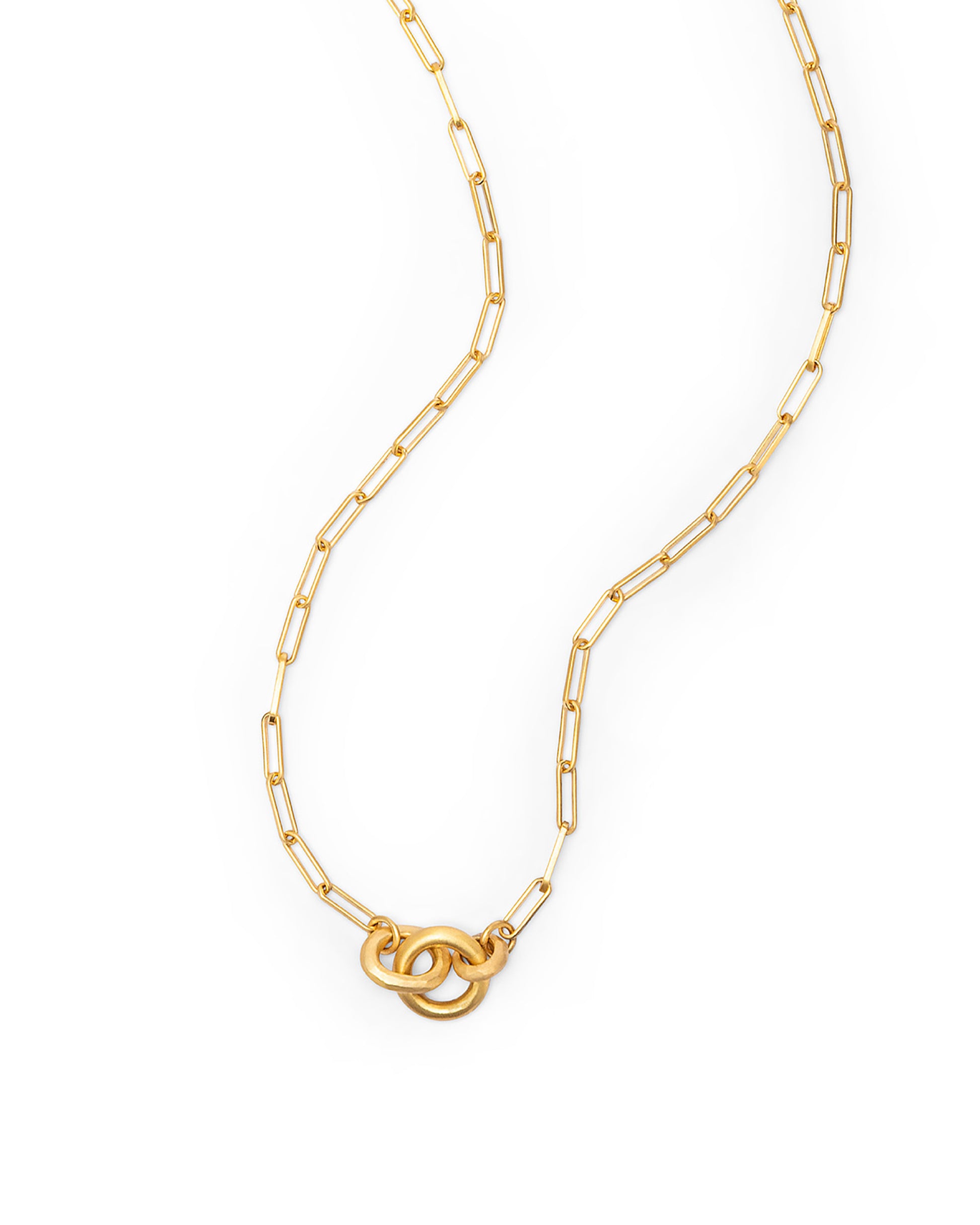 Voyage Necklace Clip Chain Light, versatile slim jewel that can be worn at full length or doubled around the neck. Enriched by a bold charm holder ring, joined by oval and round links with a refined faceted finish. Chic on its own, and captivating with multiple charms. 100% handmade in Italy.
