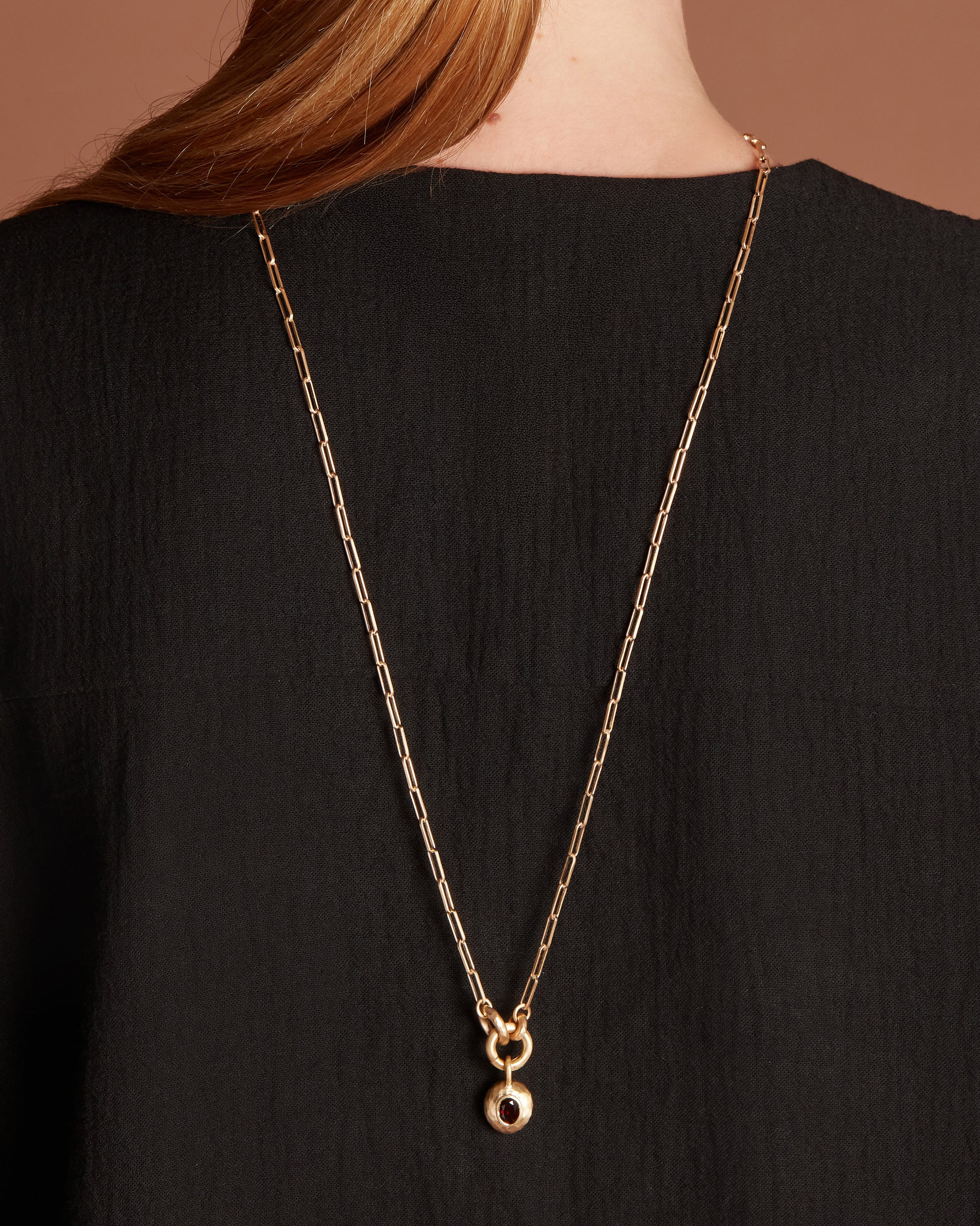 The Voyage Necklace with Clip Chain Light offers a sleek, versatile silhouette, to wear long or wrapped twice around the neck. Its faceted links and distinctive charm holder create a modern foundation for the Sasso Charm with a 1.5 ct. of Natural Red Garnet, symbolizing love, courage, and vitality. Wear solo or with add more charms to make it uniquely yours. 100% Handmade in Italy.