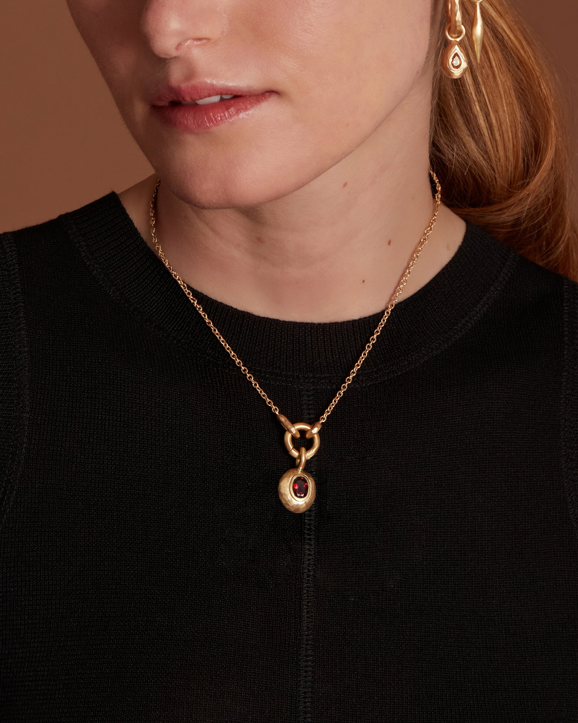 An elegant expression of love, courage, and inner confidence. The Voyage Necklace Light Chain, with oval and round links and a bold charm holder ring, is paired with the Sasso Charm, set with 1.5 ct. of Natural Red Garnet, a fiery gem that inspires love, courage, and vitality. Add more charms to make it uniquely yours. 100% Handmade in Italy.