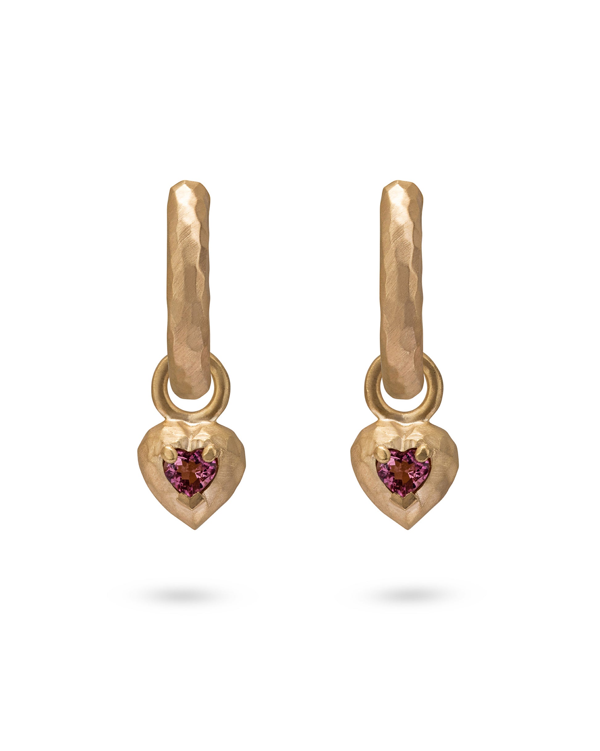 Wander Hoops Medium with Heart Charms Pink Tourmaline