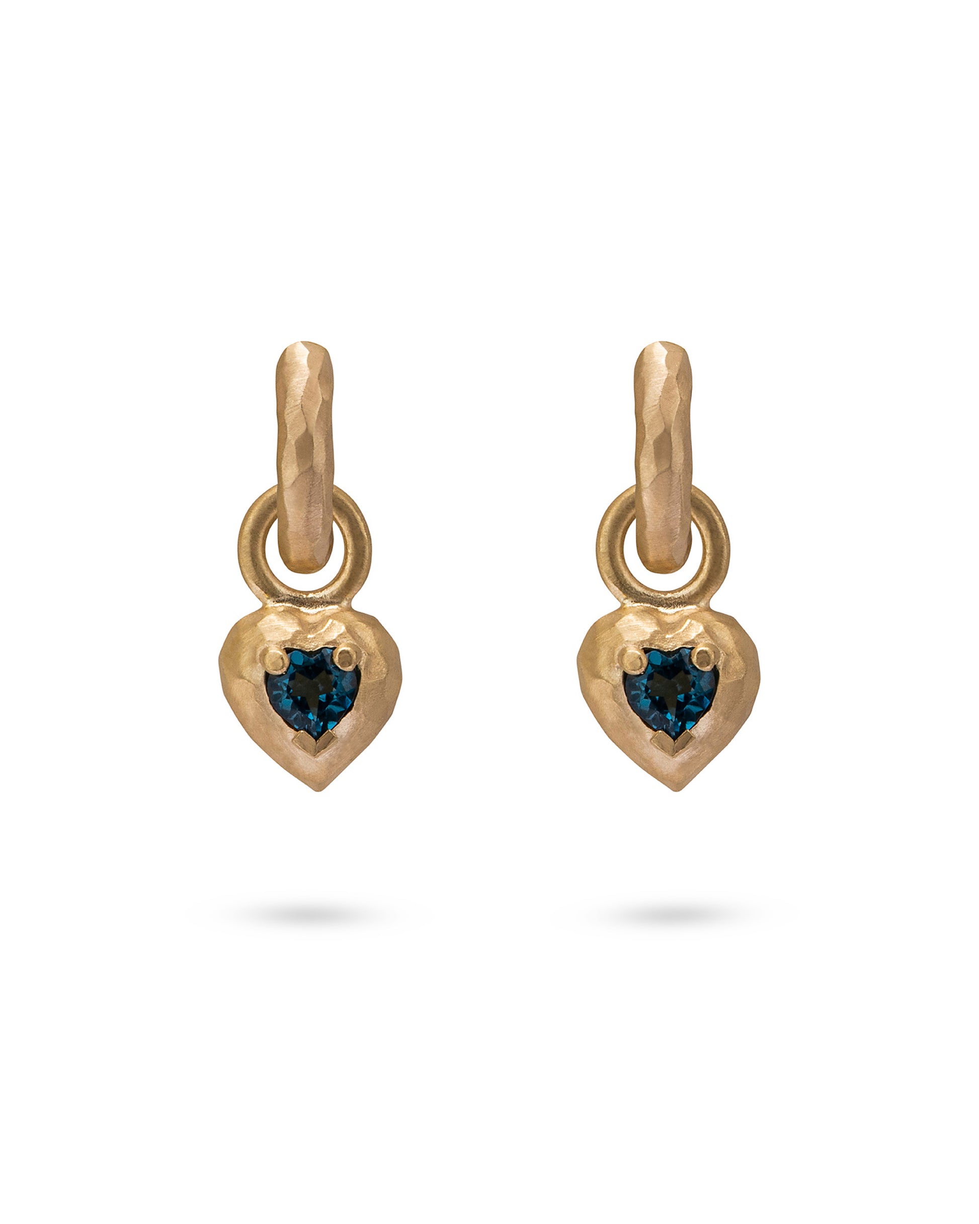 Wander Hoops Small with Heart Charms Deep Blue Topaz