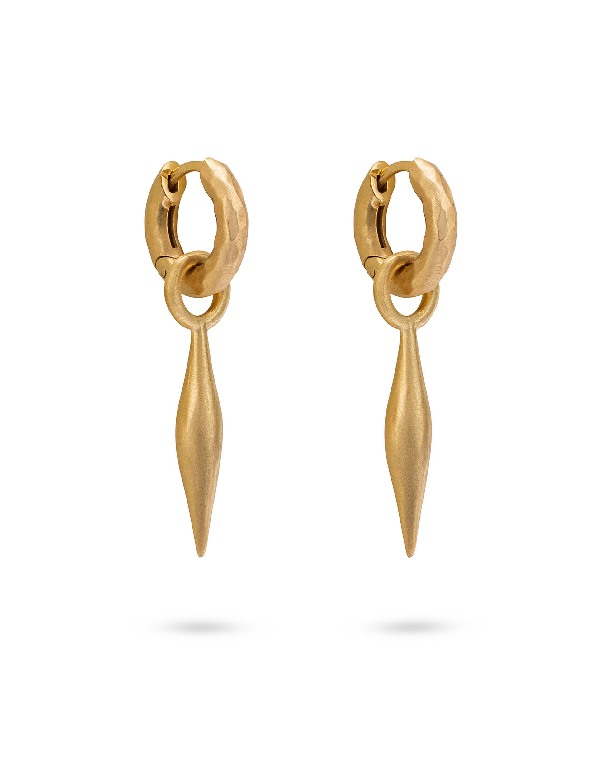 The Wander Hoops, lightweight and hand-faceted, meet Spindle Charms, a sleek shape, emblem of feminine strength and creativity. Together, they create a bold yet elegant statement, uniting artisanal heritage with modern design. 100% Handmade in Italy